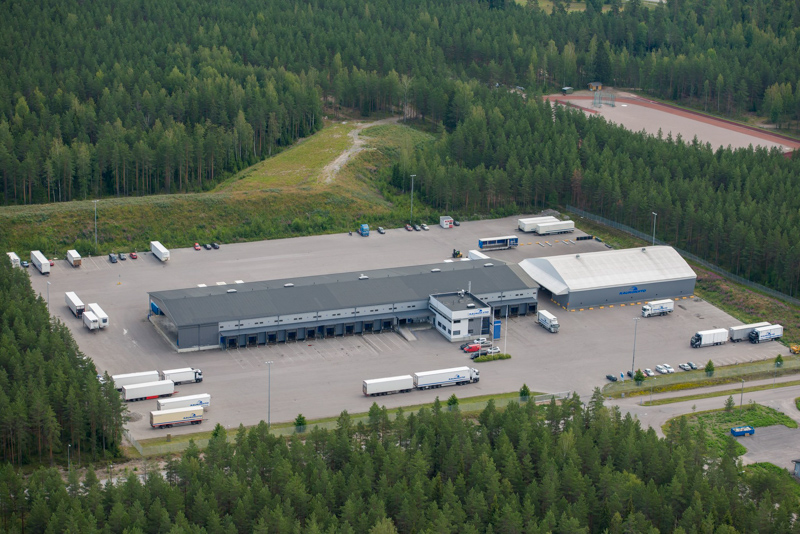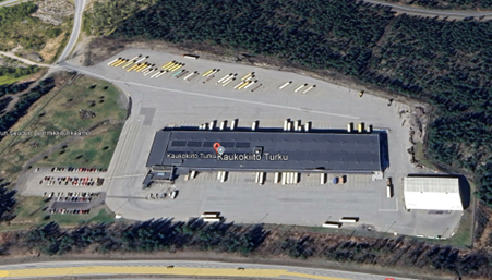 Kuvassa Kaukokiidon Hollolan ja Turun terminaalit. Aluevalaistus toteutettu AD Zone -valonheittimillä. Myös Turun terminaalin ulkovalaistus on toteutettu valmistamillamme heittimillä.